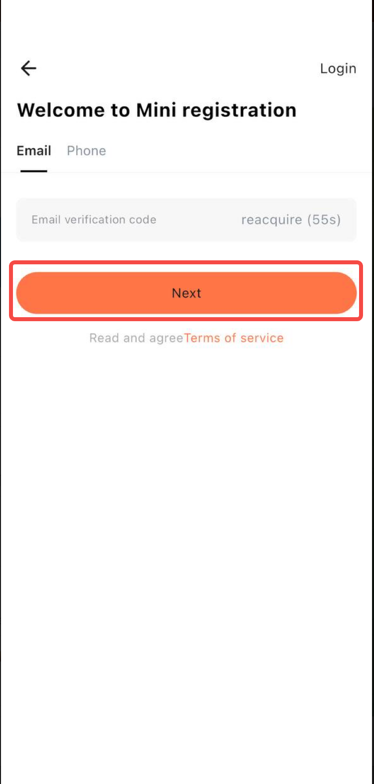 3. Choose to register with an Email or Phone Number, enter the required information, and click Next.