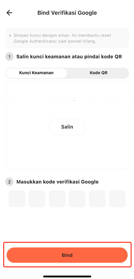 4. Download Google Authenticator. If you have another authenticator or have already downloaded it, scan the QR code above or copy the secret key into your authenticator. Then, enter the 6-digit code displayed on the authenticator and click Bind below to complete the two-factor authentication.