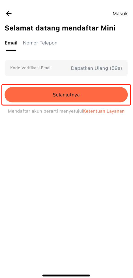 Masukkan kode verifikasi, lalu klik "Berikutnya" untuk menyelesaikan pendaftaran.