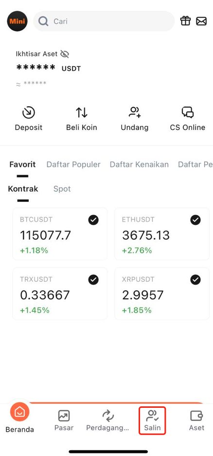 1. Buka aplikasi, masuk ke beranda dan klik copy trade.