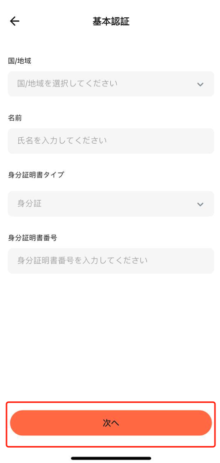 国/地域と証明書の種類を選び、名前と証明書番号を入力して「次へ」をクリックします。