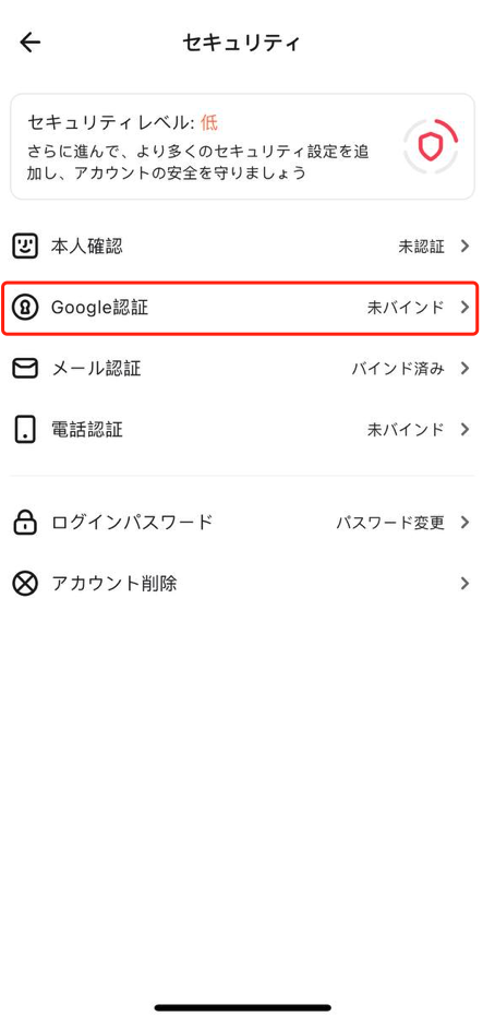 3. 「Google認証」の「解除」をタップしてください。