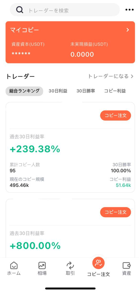 3. 気に入ったトレーダーを選択し、「コピー取引」をタップします。