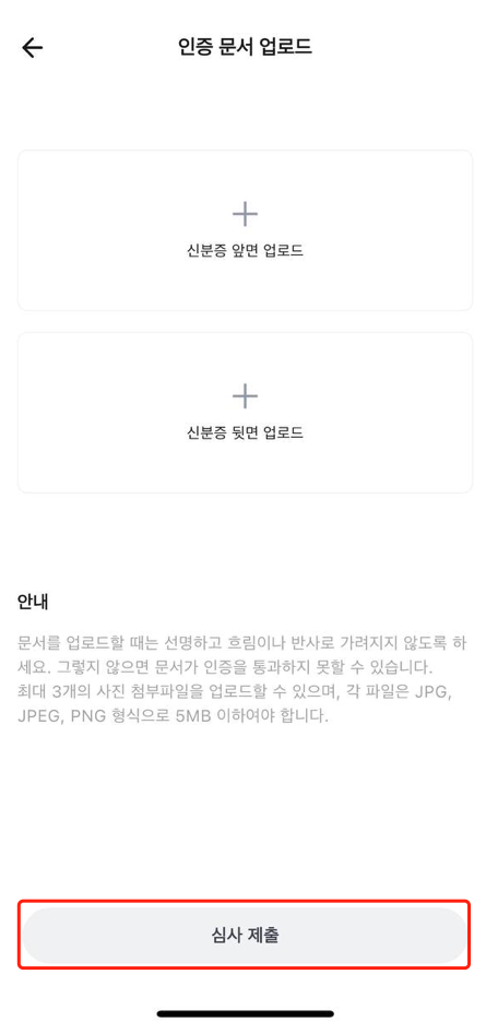 안내에 따라 관련 증명서 사진을 업로드합니다.