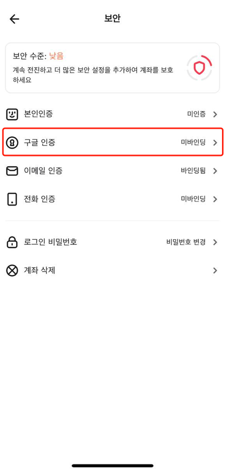 3. "구글 인증"에서 「연동하기」를 클릭하세요.