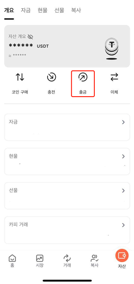 1. 자산을 클릭한 다음 "출금"을 선택합니다.