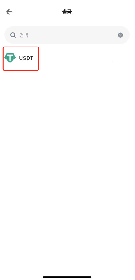 2. 코인 종류(예: USDT)를 선택한 다음 해당 블록체인을 선택하여 출금합니다. (원문에는 "充值"로 되어 있지만, 여기서는 "出金"이 맞는 것으로 보입니다.)