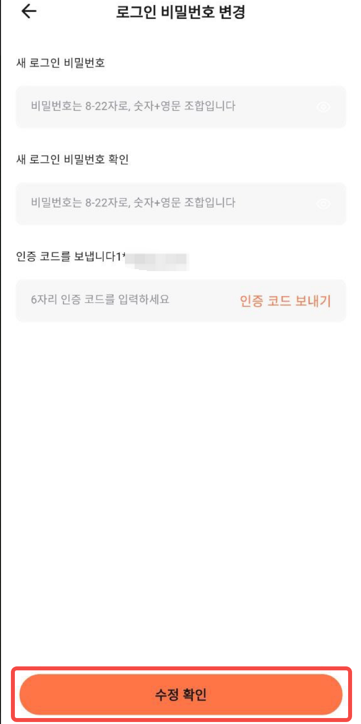- 새로운 로그인 비밀번호를 입력하고 확인한 후, 계정 재설정 비밀번호에 연결된 (이메일, 휴대전화, Google Authenticator) 인증 코드를 입력하고 확인을 클릭하여 비밀번호 재설정을 완료합니다.