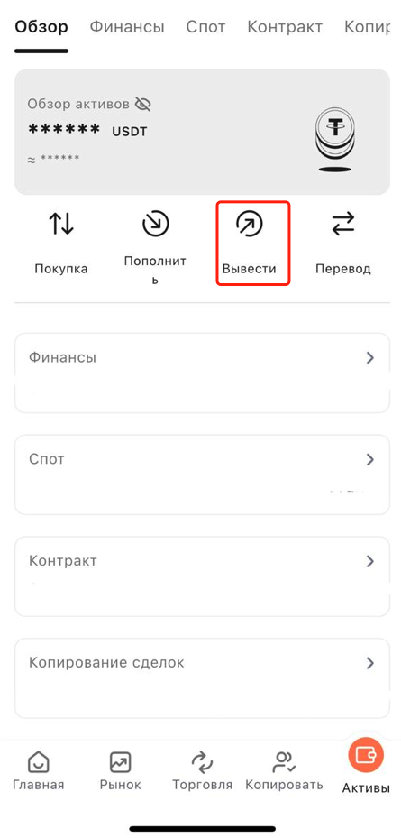 1. Нажмите "Активів", затем выберите "Вывести средства".