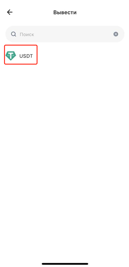 2. Выберите криптовалюту (например, USDT) и соответствующую блокчейн-сеть для вывода.