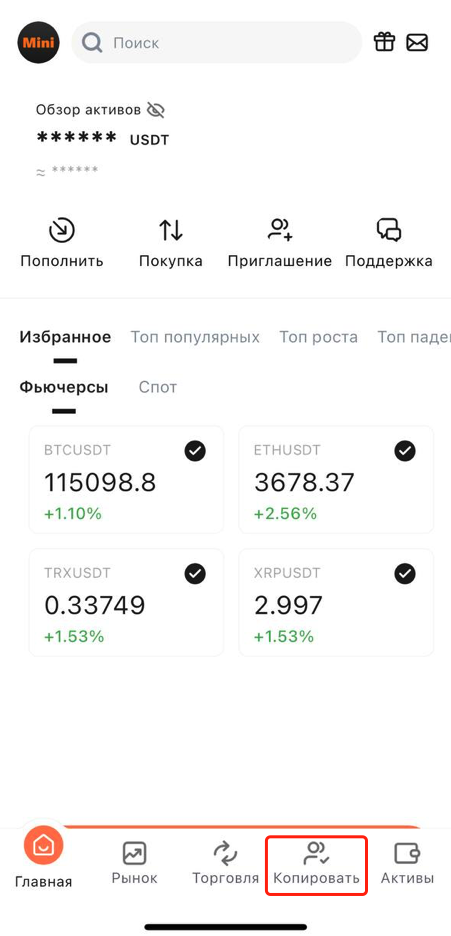 1. Откройте приложение, перейдите на главную страницу и нажмите «Копировать сделки».
