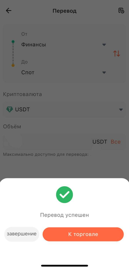 2. Выберите тип счета, с которого нужно перевести средства (маржинальный счет, спотовый счет, основной счет, счет для копирования сделок), введите сумму перевода и, убедившись в правильности данных, нажмите «Перевести сейчас». Перевод будет завершен.