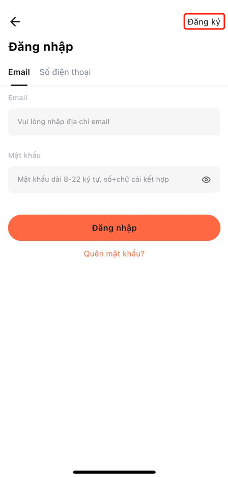 2.Nhấn vào Đăng ký ở góc trên bên phải.