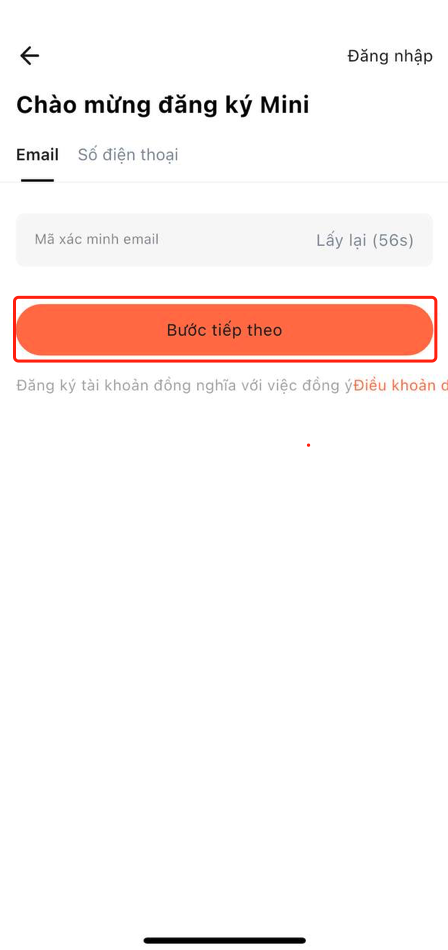 5.Nhập mã xác nhận, nhấn vào Tiếp theo để hoàn tất đăng ký.