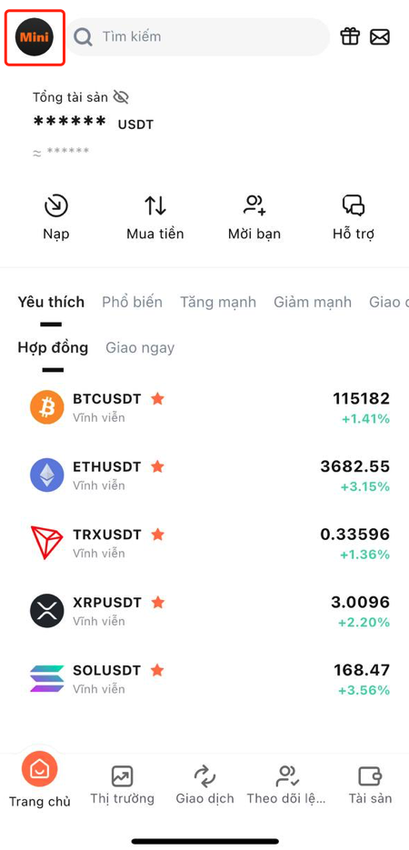Mở trang chính của ứng dụng, nhấp vào thanh menu ở góc trên bên trái.