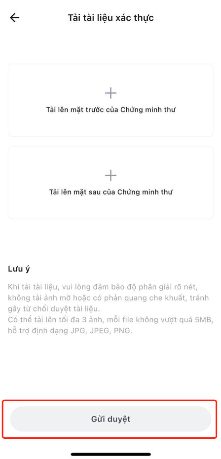 Tải lên ảnh giấy tờ liên quan theo hướng dẫn.