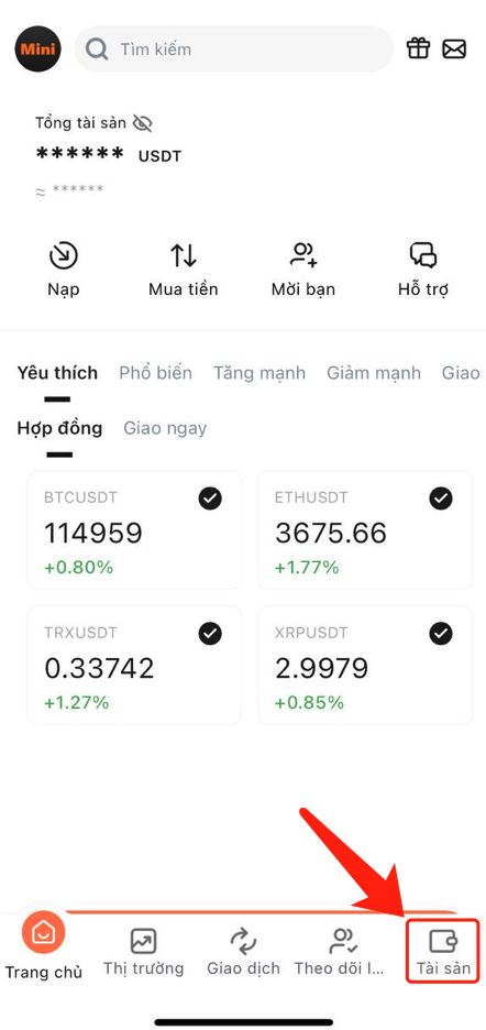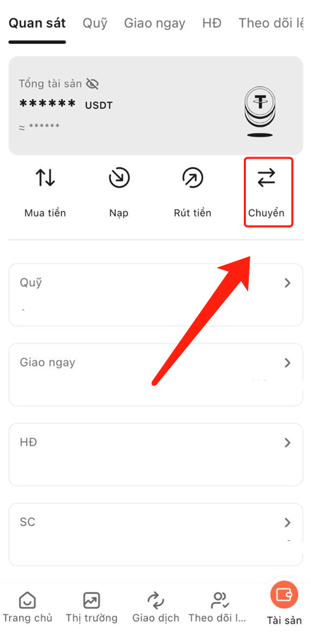 1. Vào trang chủ, nhấp vào "Tài sản", sau đó nhấp vào "Chuyển khoản".