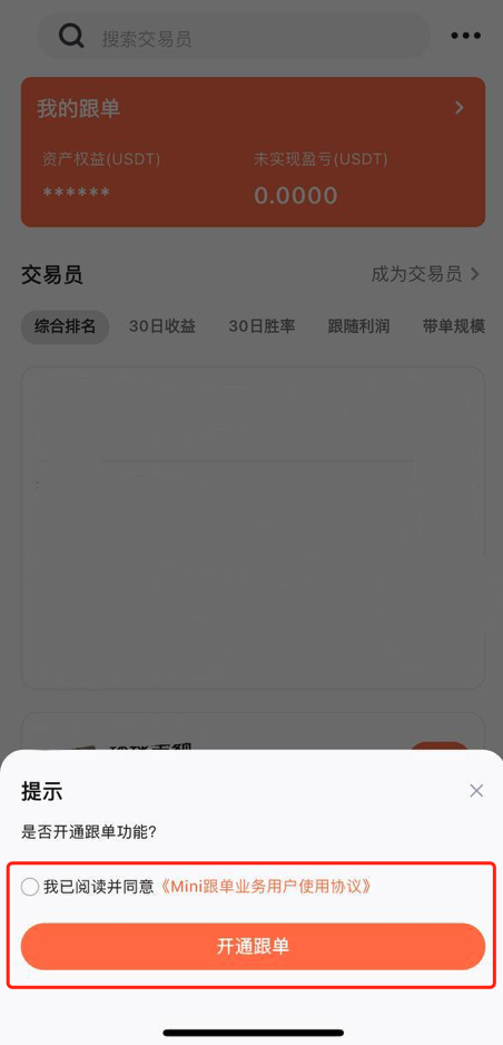 2.阅读并同意《跟单员用户使用协议》后点击开通跟单