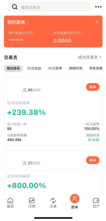3.选择心仪的交易员,点击跟单