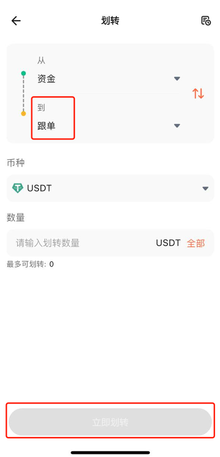 5.设置完成后,将账户资金划转至跟单账户后,交易员进行带单交易,系统将会自动以您目前跟随的交易员跟单设置进行跟随交易。